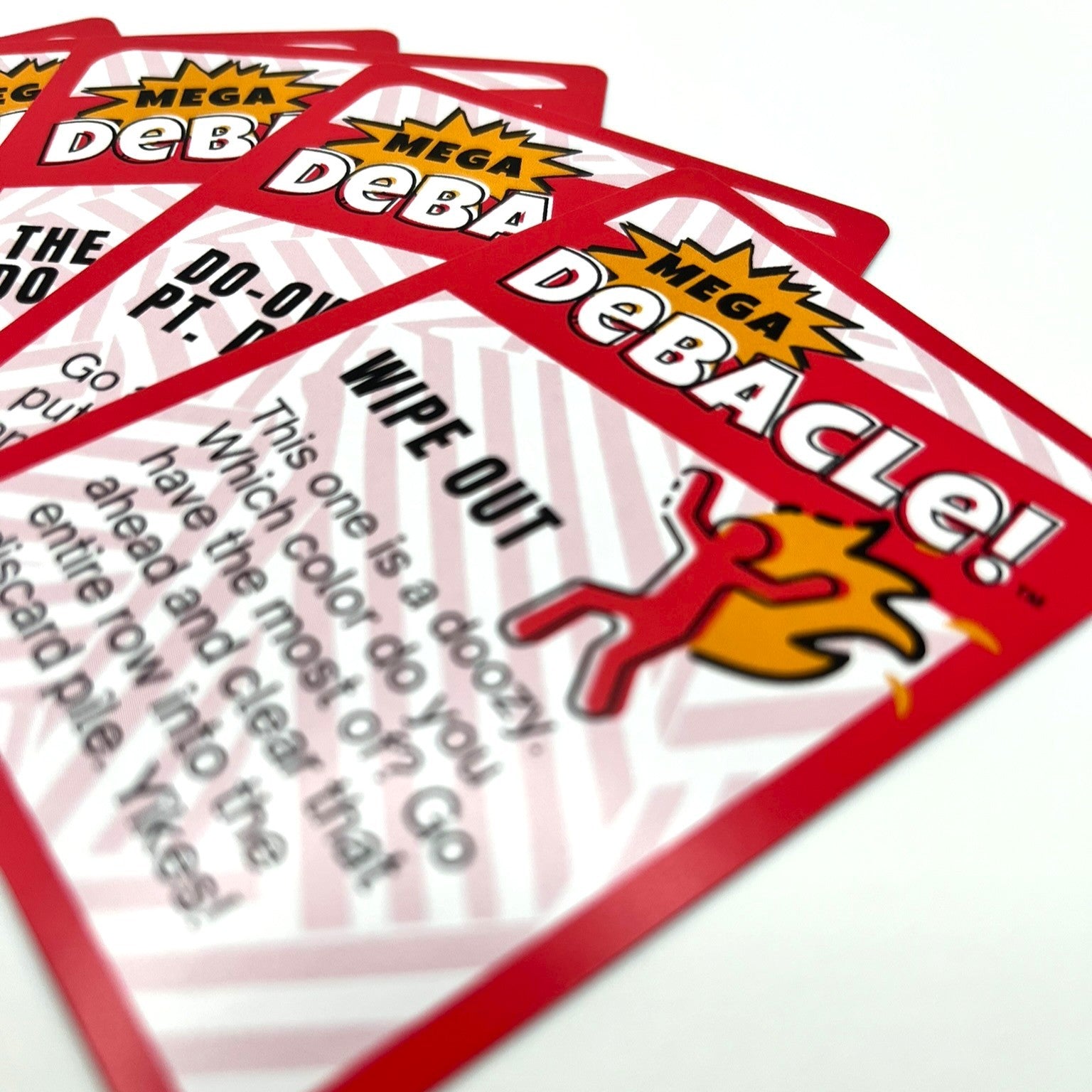 Want to dial it down for the kiddos? Remove the MEGA Debacle!™ cards and keep it light. Or leave them in and embrace the full, glorious disaster.